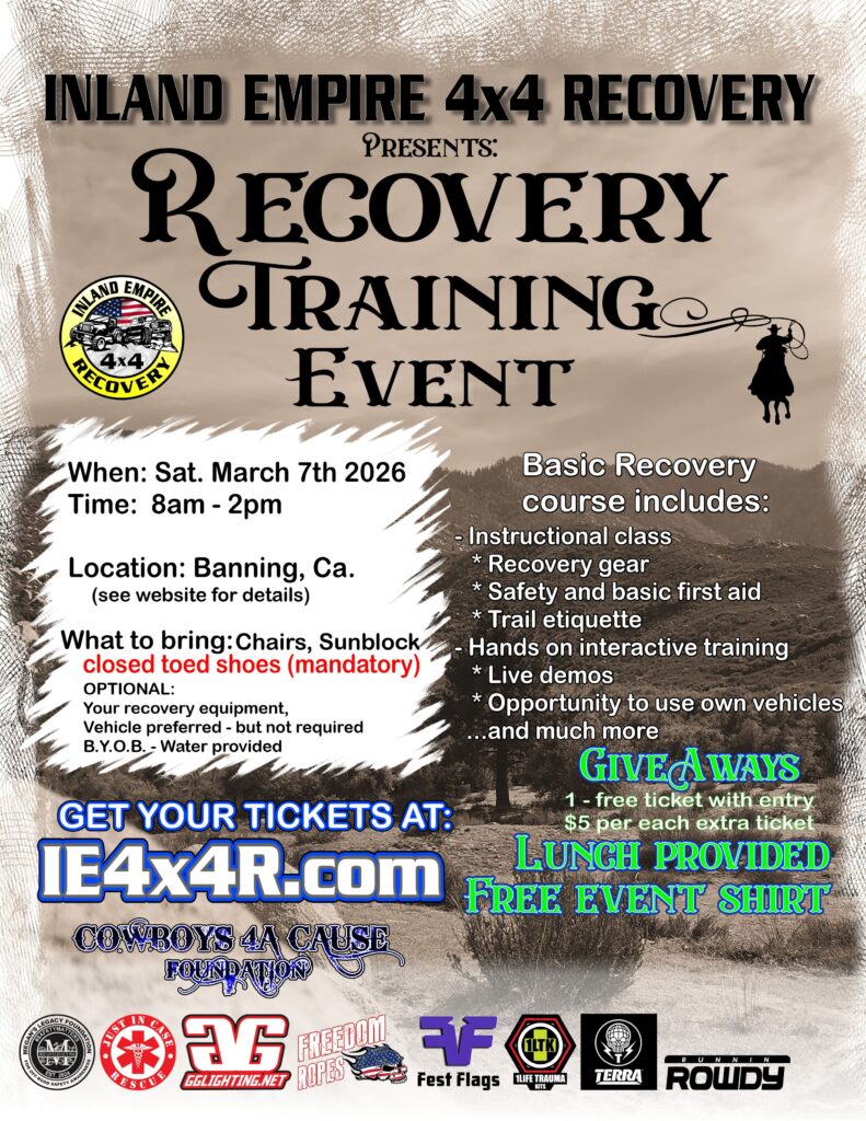 This will be a great way for newbies and seasoned riders to get all the current information, safety skills, and knowledge they need to hopefully have a safer and more enjoyable riding adventure. Our CORE team works hard at these classes teaching not only the recovery basics but the safety side of it too. So if your looking to up your game, want to recover rigs but not sure how, or would like to learn the proper techniques then these are the classes you don’t want to miss. ALSO, hidden side note for those of you that read this stuff….. this is how you join the CORE team and get invited to the fun stuff like Terra crews speed metal event coming up. hint hint…. vip everything if your on our CORE team (we run it)