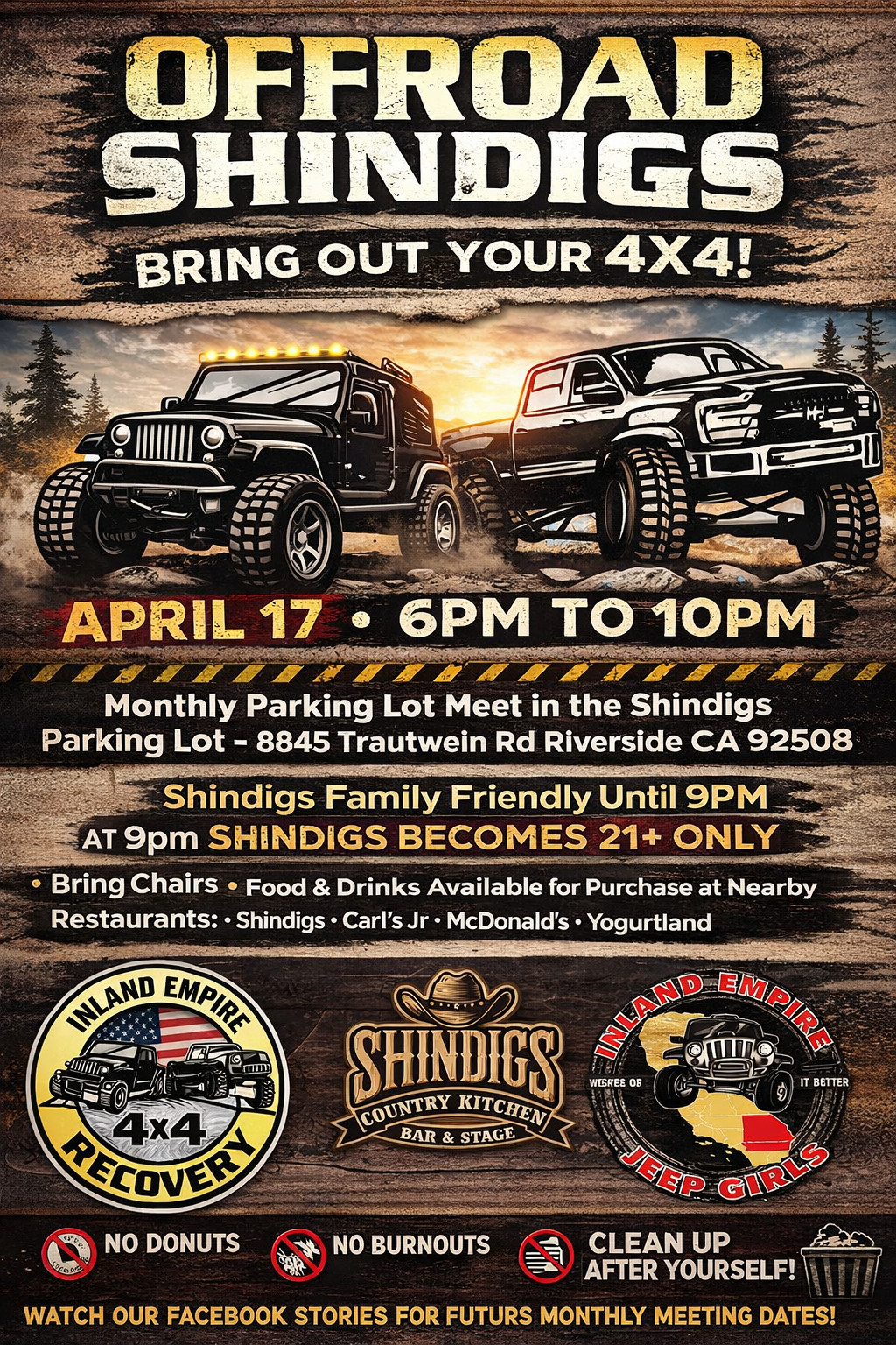 Come hang out and meet members of both groups in 1 very cool space. Inland Empire Jeep Girls and our group together are starting to do more meet/greet events as requested by many members. Shindigs will be whipping up amazing drinks as usual and plenty of parking so come say hi, come for dinner, or […]